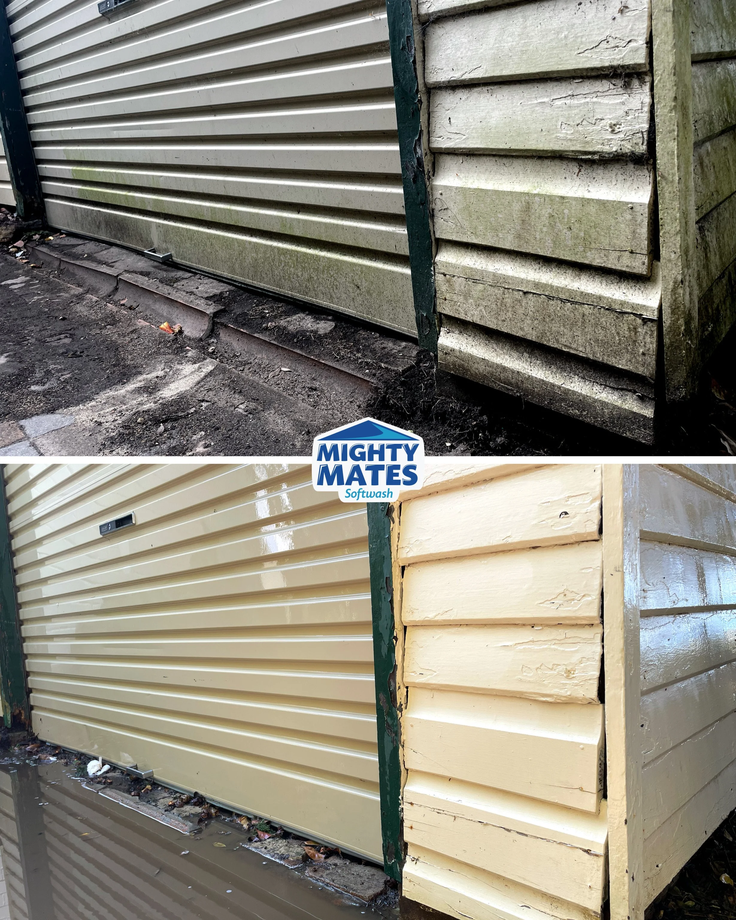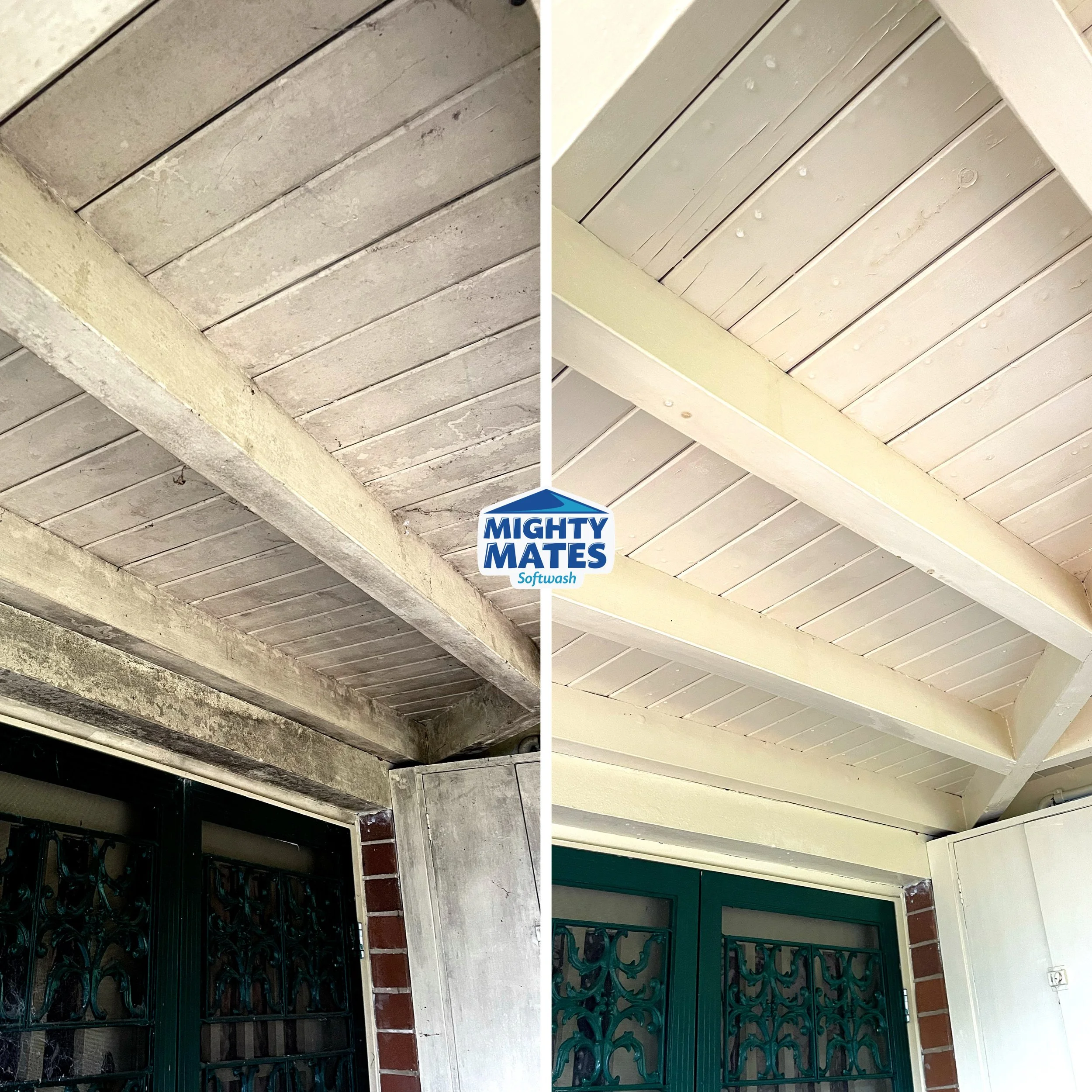 Mighty Mates soft wash many exterior house washing projects on a variety of materials including Vinyl, cedar, hardie plank, aluminum, brick. We use a soft wash approach with biodegradable cleaning solution to ensure your siding is cleaned properly without the use of a pressure washer or high pressure.